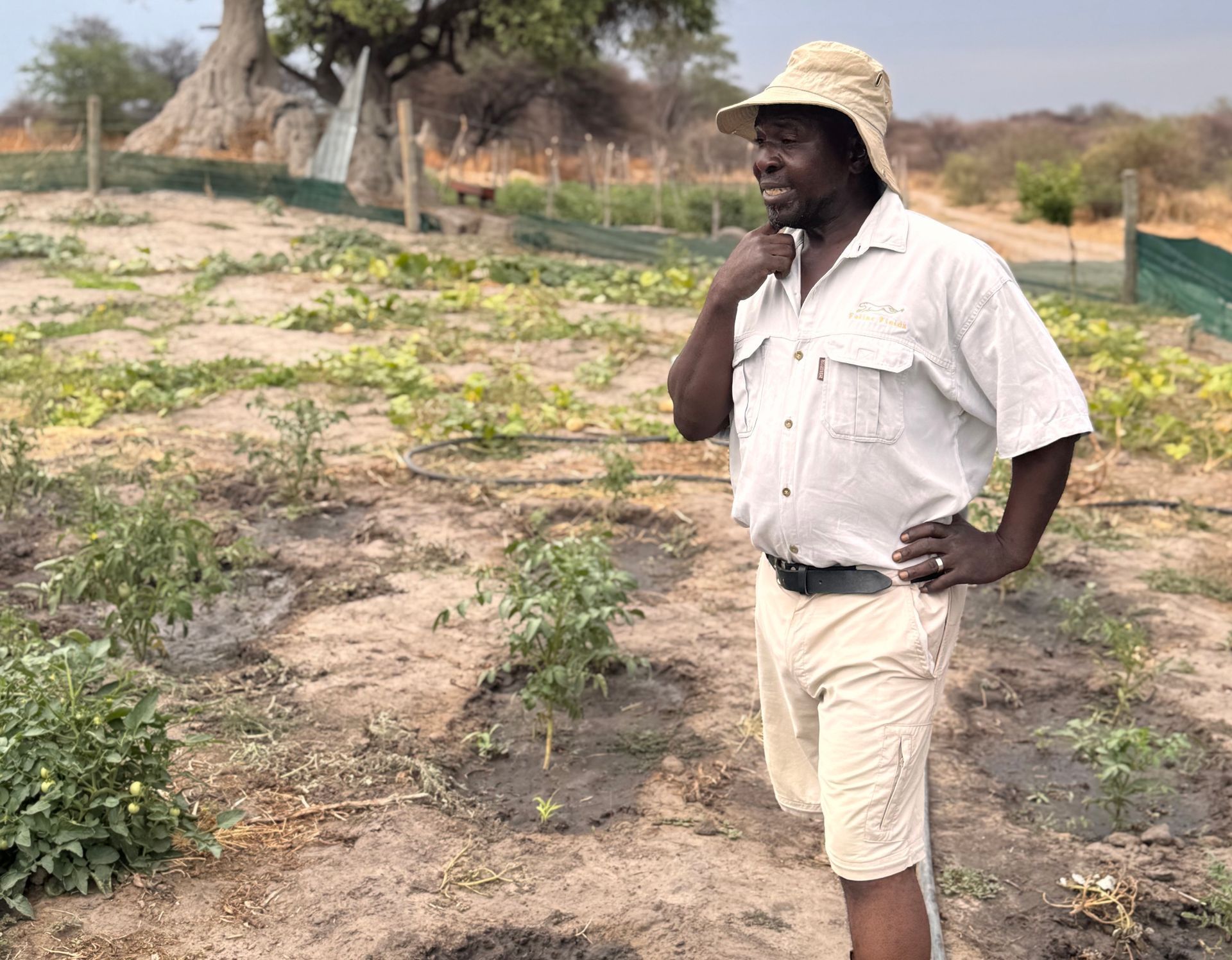 The Trust’s community garden is another great example of embedding sustainability and wellbeing. Under the guidance of long-standing staff member Oyapo Gotshajwang, the garden supplies fresh vegetables (spinach, tomatoes, peppers, mint, with watermelon and herbs coming soon) for staff and community programmes. Oyapo previously worked as a guide and brings bush-wisdom, patience and a warm “hakuna matata” spirit to every seed planted and every harvest shared.